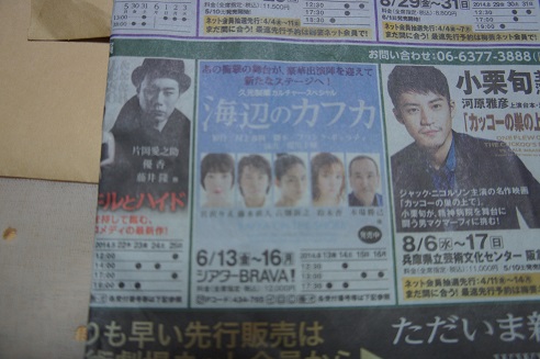 って、朝日新聞にでていた「海辺のカフカ」の広告を持ってきてくれました。